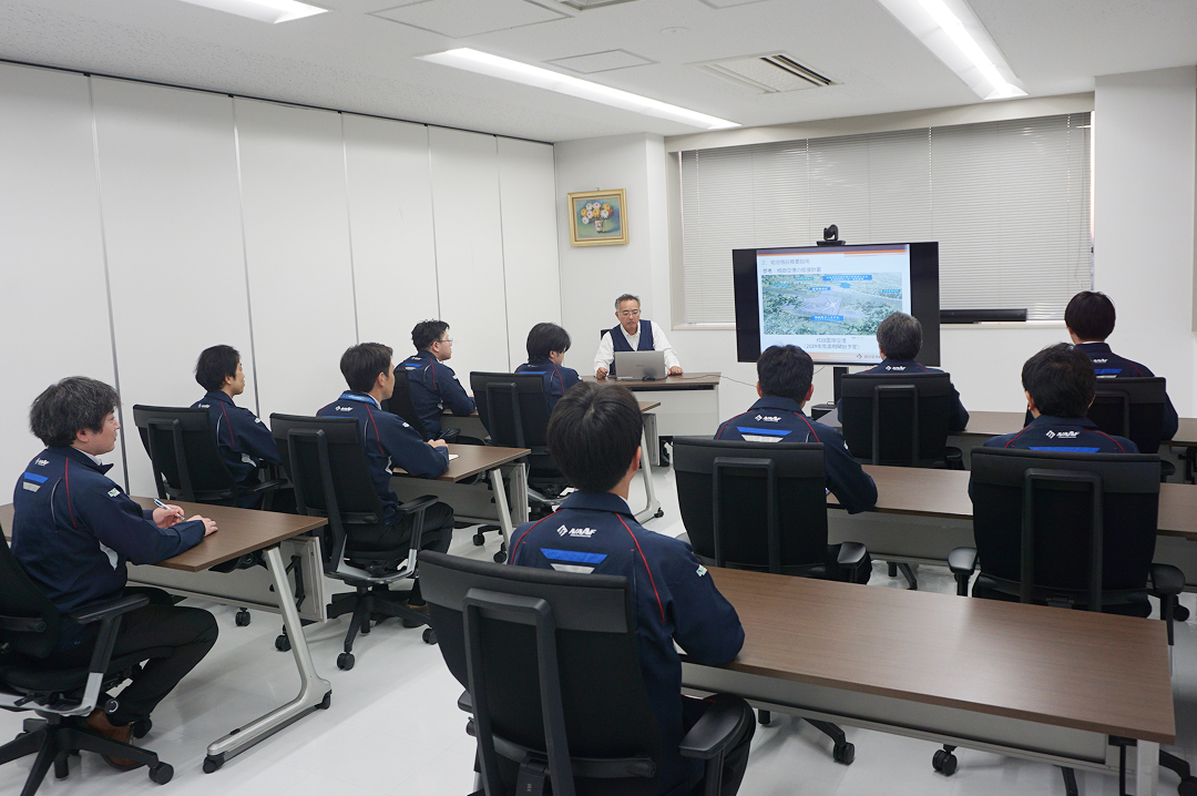 航空機給油施設に係る設計業務の基本事項及び積算業務等の技術継承と人材育成を目的に社内勉強会を実施しています。